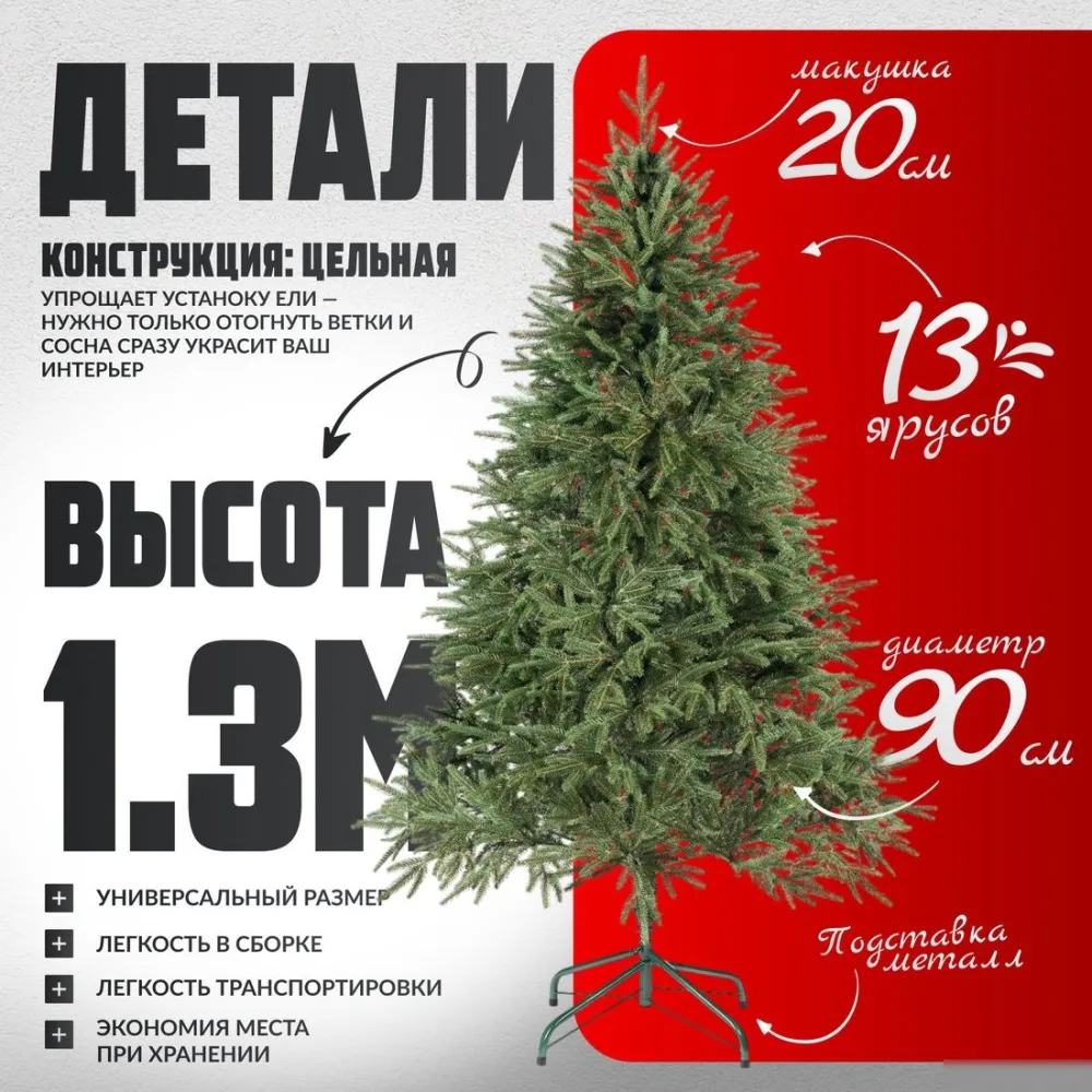 искусственная ель, литая, 1.3 м, цвет зеленый
