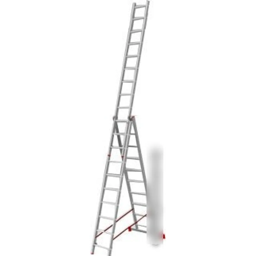 | Информация | - приставная лестница;- приставная выдвижная лестница;- стремянка;- стремянка с выдвинутой секцией;- функция лестничных пролётов.Технические преимущества:- максимальная прочность и надёжность при небольшом весе изделия;- стойки и ступени изготовлены из прессованного профиля;- многократная развальцовка в соединении ступеней со стойками обеспечивает высокую прочность и долговечность;- рифлёные ступени с шагом 260 мм для безопасного подъёма и спуска;- алюминиевые направляющие кронштейны надёжно удерживают выдвижную секцию во всех рабочих положениях;- зацепы с автоматическим фиксатором;- широкая поперечная траверса обеспечивает высокую устойчивость;- функция лестничных пролётов;- надёжно закреплённые на стойках и траверсе пластиковые наконечники препятствуют скольжению;- верхняя секция легко вынимается и устанавливается и может служитьотдельной приставной лестницей;- функция лестничных пролётов с использованием верхней съёмной секции. |