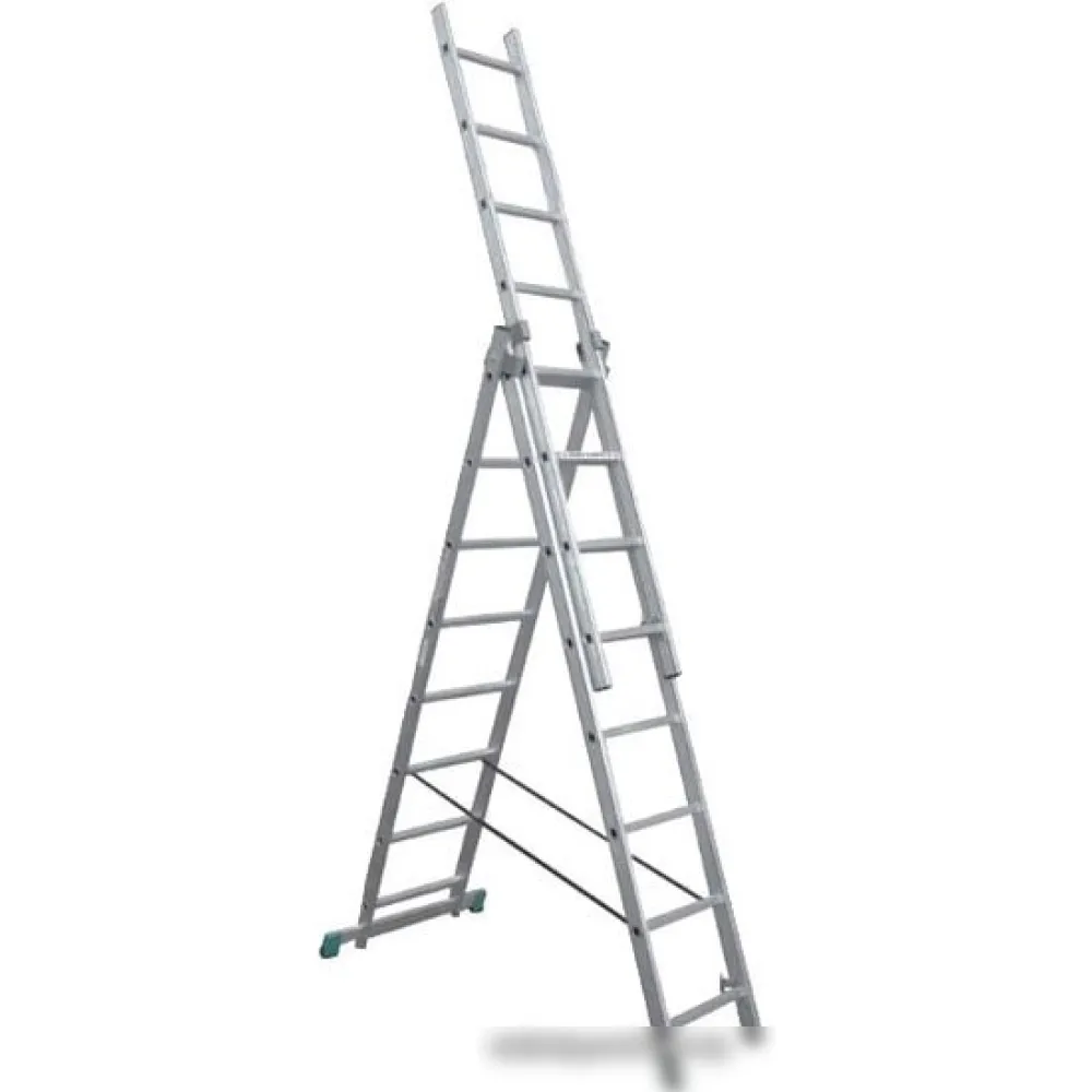 | Информация | - приставная лестница;- приставная выдвижная лестница;- стремянка;- стремянка с выдвинутой секцией;- функция лестничных пролётов.Технические преимущества:- прочность и надёжность при небольшом весе изделия;- стойки и ступени изготовлены из прессованного профиля;- многократная развальцовка в соединении ступеней со стойками обеспечивает высокую прочность и долговечностьрифлёные ступени с шагом 260мм для безопасного подъёма и спуска;- алюминиевые направляющие кронштейны надёжно удерживают выдвижную секцию во всех рабочих положениях;- зацепы с автоматическим фиксатором;- широкая поперечная траверса обеспечивает высокую устойчивость;- надёжно закреплённые на стойках и траверсе пластиковые наконечники препятствуют скольжению;- верхняя секция легко вынимается и устанавливается и может служить отдельной приставной лестницей;- функция лестничных пролётов с использованием верхней съёмной секции. |