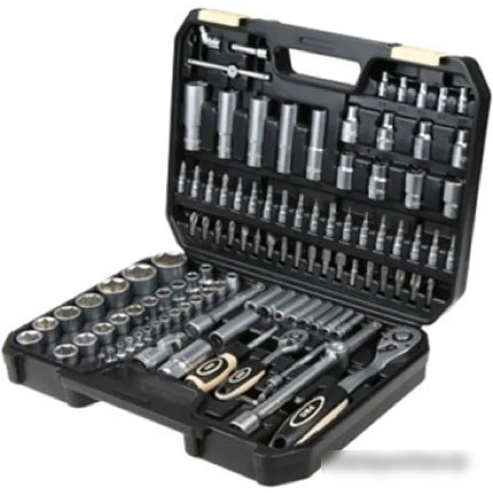 | Комплектация | Торцевые головки 1/2" - 18 предметов: (10, 11, 12, 13, 14, 15, 16, 17, 18, 19, 20, 21, 22, 23, 24, 27, 30, 32мм)Головка-звездочка 1/2" - 8 предметов: (10, 11, 12, 14, 16, 18, 20, 24мм) Глубокие торцевые головки 1/2" - 5 предметов: (14, 15, 17, 19, 22мм)Трещотка - 1/2" Удлинители 1/2" - 2 предмета (125, 250мм) Кардан - 1/2" Переходники Головки свечные 1/2" - 2 предмета: (16 мм, 21 мм) Шестигранные ключи - 4 предмета: (1.27, 1.5, 2, 2.5) Биты 1/2" (насадки-отвертки) - 16 предметов: HEX: 7, 8, 10, 12, 14 SL: 8, 10, 12 PH: 3, 4 PZ: 3, 4 T: 40, 45, 50, 55 Торцевые головки 1/4" - 13 предметов: (4, 4.5, 5, 5.5, 6, 7, 8, 9, 10, 11, 12, 13, 14мм) Головка-звездочка 1/4" - 5 предметов: (4, 5, 6, 7, 8мм) Глубокие торцевые головки 1/4" - 8 предметов: (6, 7, 8, 9, 10, 11, 12, 13мм) Трещотка - 1/4" Удлинители 1/4" - 2 предмета (50, 100мм) Кардан - 1/4" Переходник Отвертка под биты - 1/4" Вороток - 1/4" Биты 1/4" (насадки-отвертки) - 17 предметов: HEX: 3, 4, 5, 6 SL: 4, 5.5, 7 PH: 1, 2 PZ: 1, 2 T: 8, 10, 15, 20, 25, 30 |