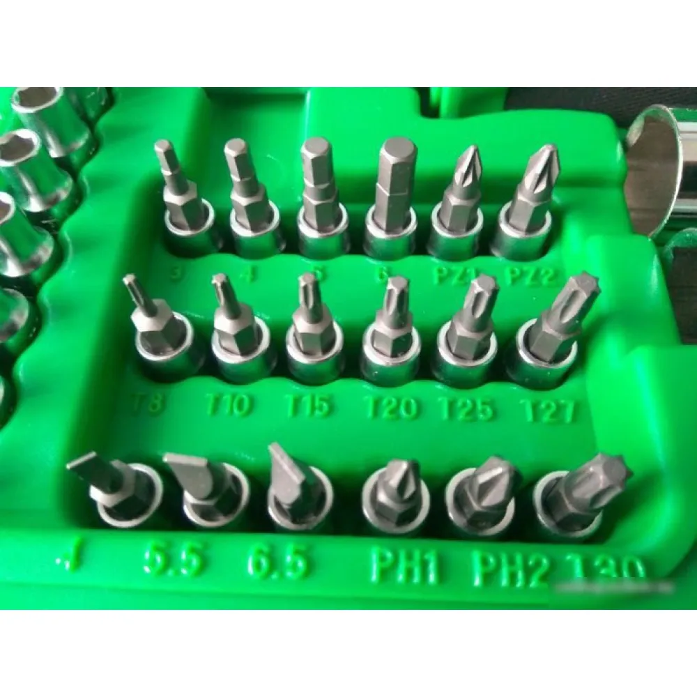 | Комплектация | Головка торцевая 1/4": 4, 4.5, 5, 5.5, 6, 7, 8, 9, 10, 11, 12, 13 ммГоловка торцевая 1/2": 14, 15, 16, 17, 18, 19, 20, 22, 24, 27, 30, 32 ммСвечная головка 1/2" магнитная: 16, 21 ммТрещотка 1/4" 36 зубцов (резиновая ручка)Трещотка 1/2" 36 зубцов (резиновая ручка)Ключи комбинированные 8,10,11,12, 13,14,17,19, 22 ммГоловка с насадкой Hex 1/4": 3, 4, 5, 6 ммГоловка с насадкой Torx 1/4": T8, T10, T15, T20, T25, Т 27, T30Головка с шлицевой насадкой 1/4": 4, 5.5, 6.5 ммГоловка с насадкой PH 1/4": PH1, PH2Насадка PZ 1/4": PZ1, PZ2Насадка 5/16" Hex: 8, 10, 12, 14 ммНасадка 5/16" Torx: T40, T45, T50, T55, 60Насадка 5/16" для ударной отвертки: 8,10,12 ммНасадка 5/16" PZ: PZ3, PZ4Удлинитель 1/4" 50 ммУдлинитель 1/4" 100 ммУдлинитель 1/2" 125 ммУдлинитель 1/2" 250 ммКардан 1/4"Кардан 1/2"Вороток-отвертка 1/4"150 ммВороток 1/4" с плавающей головкой 115 ммДержатель бит 1/2 х 5/16"Гибкий вал 1/4"Переходник 3/8 х 1/2"с отверстием |