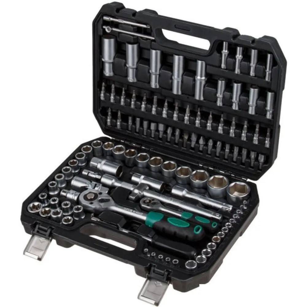 | Комплектация | Головка торцевая 1/4": 4, 4.5, 5, 5.5, 6, 7, 8, 9, 10, 11, 12, 13, 14 мм; Головка торцевая длинная 1/4": 6, 7, 8, 9, 10, 11, 12, 13 мм; Головка торцевая 1/4": E4, E5, E6, E7, E8; Головка с насадкой HEX 1/4": H3, H4, H5, H6; Головка с насадкой TORX 1/4": T8, T10, T15, T20, T25, T30; Головка с насадкой SL 1/4": SL4, SL5.5, SL7; Головка с насадкой PH 1/4": PH1, PH2; Головка с насадкой PZ 1/4": PZ1, PZ2; Головка торцевая 1/2": 10, 11, 12, 13, 14, 15, 16, 17, 18, 19, 20, 21, 22, 23, 24, 27, 30, 32 мм; Головка торцевая длинная 1/2": 14, 15, 17, 19, 22 мм; Головка торцевая 1/2": E10, E11, E12, E14, E16, E18, E20, E24; Свечная головка 1/2": 16, 21 мм; Насадка 5/16" HEX: H7, H8, H10, H12, H14; Насадка 5/16" TORX: T40, T45, T50, T55, T60; Насадка 5/16" SL: SL8, SL10, SL12; Насадка 5/16" PH: PH3, PH4; Насадка 5/16" PZ: PZ3, PZ4; Трещотка 1/4"; Удлинитель 1/4" 50 мм; Удлинитель 1/4" 100 мм; Кардан 1/4"; Вороток-отвертка 1/4" 150 мм; Вороток 1/4" с плавающей головкой 115 мм; Трещотка 1/2"; Переходник (держатель для бит) 1/2"х5/16"(HEX); Переходник 3/8"(F)х1/2"(М) с отверстием; Удлинитель 1/2" 125 мм; Удлинитель 1/2" 250 мм; Кардан 1/2"; Ключ шестигранный Г-обр.: 1.5, 2, 2.5 мм; Кейс |
