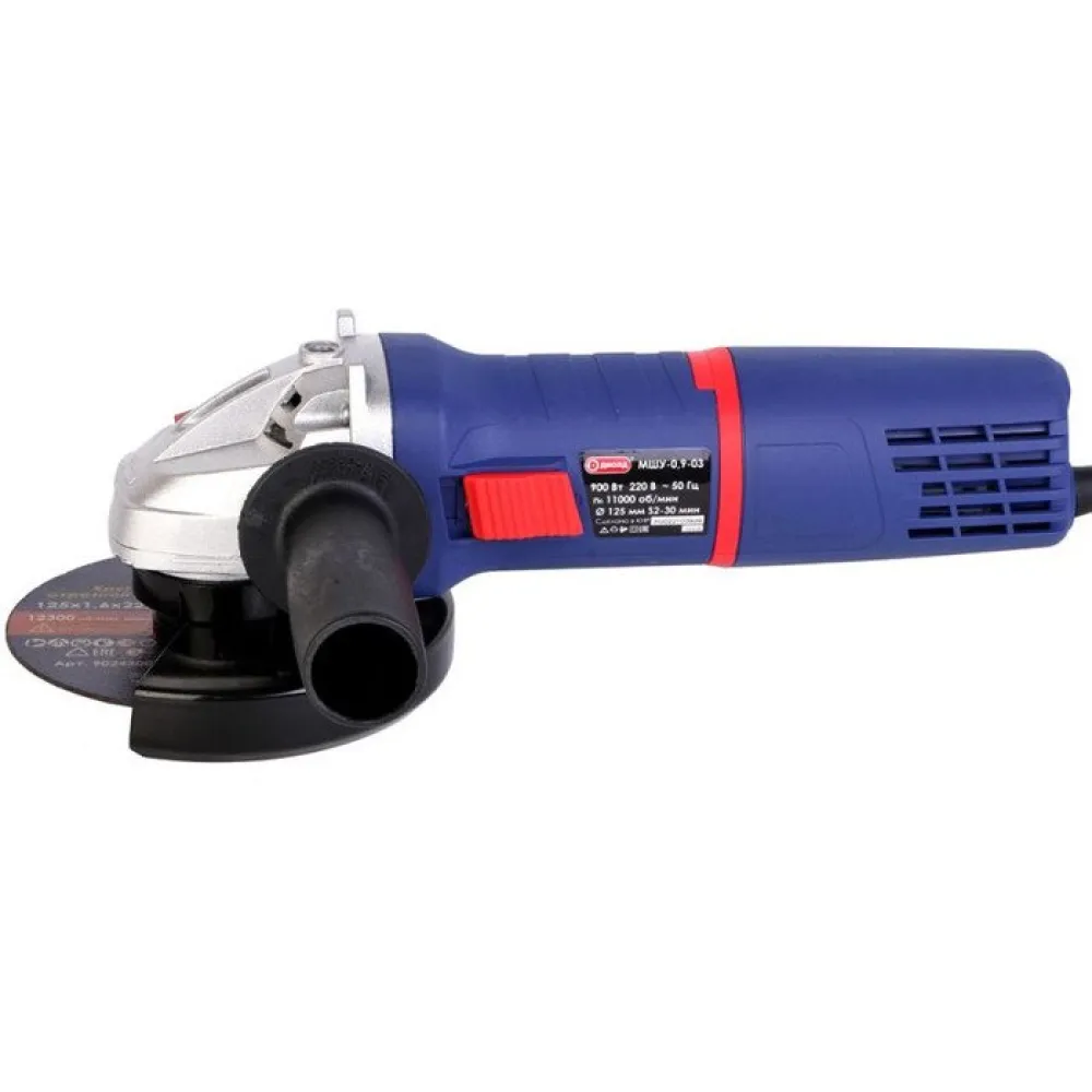 диаметр диска: 125 мм, 900 Вт, 11000 об/мин холостого хода, питание: сеть, 2.2 кг