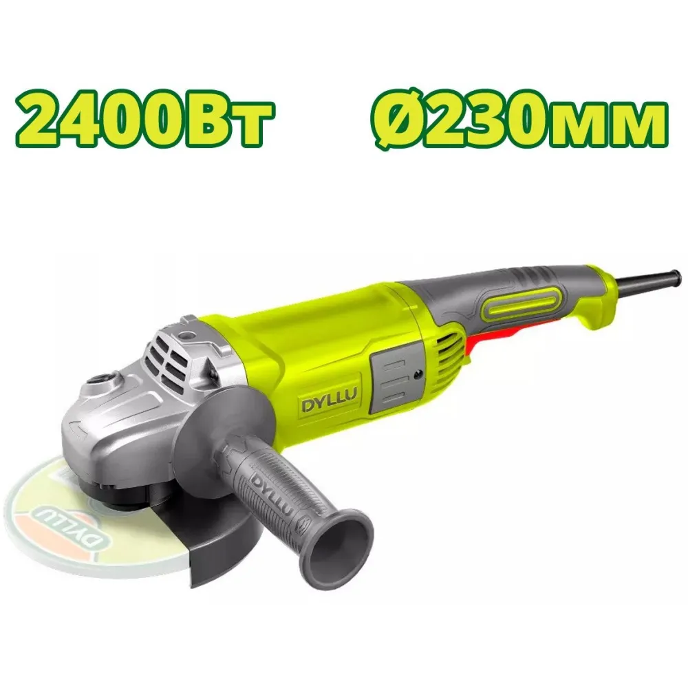 диаметр диска: 230 мм, 2400 Вт, 6400 об/мин холостого хода, питание: сеть, 6.5 кг