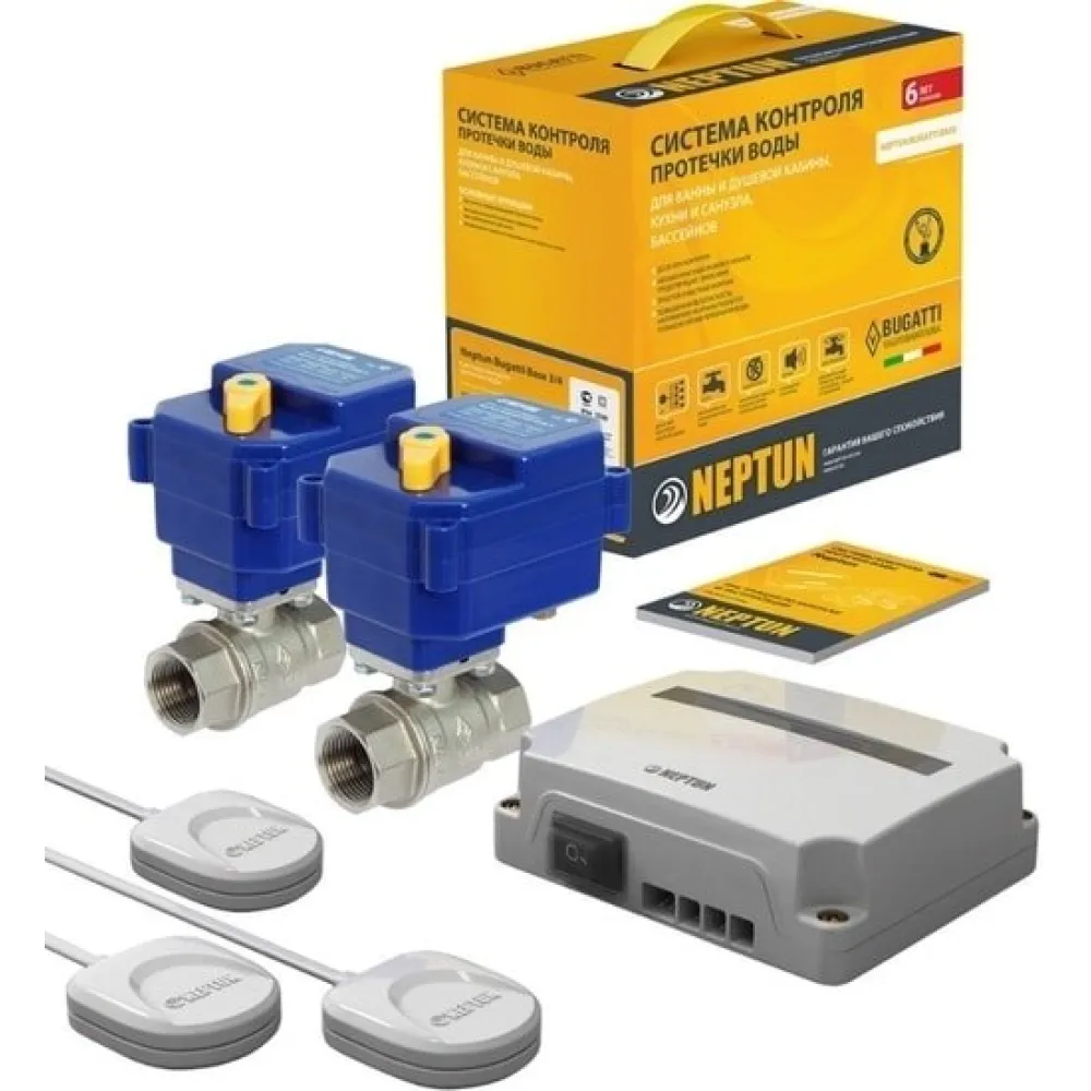 Модуль управления Neptun Base-1штДатчик контроля протечки воды SW005-3 штКран шаровый с электроприводом серии NEPTUN BUGATTI PRO 220В-2шт