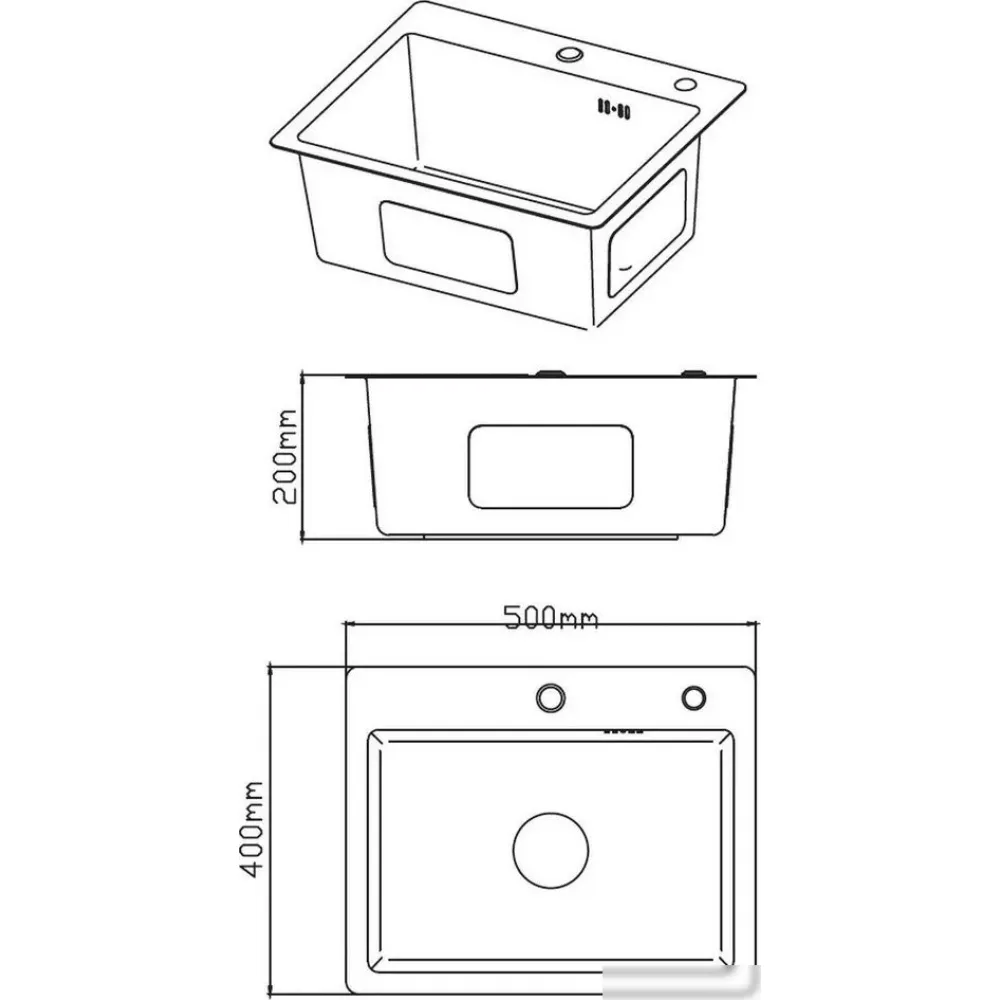 врезная на столешницу, нержавеющая сталь, фактура: матовая, размеры: 40x50 см, глубина чаши: 20 см
