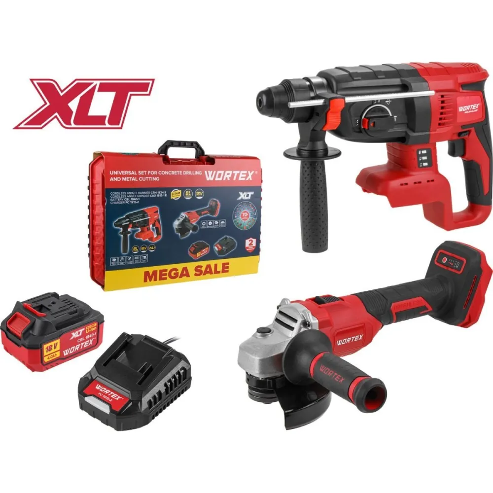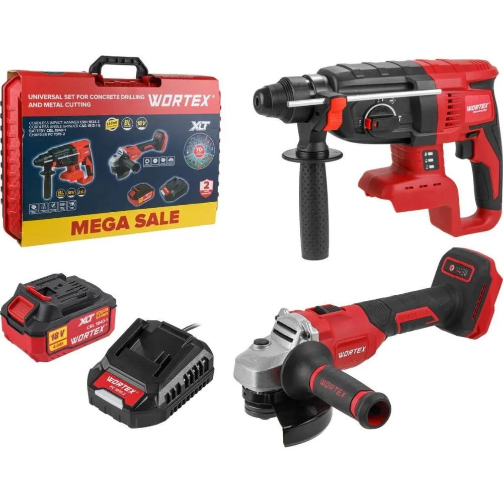 Wortex 1329852 (перфоратор, болгарка, 1 АКБ, кейс)
