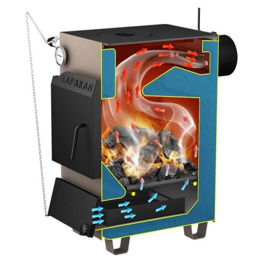 твердотопливный (дрова/уголь), 12 кВт, 120 м?, одноконтурный, напольный, закрытая камера сгорания