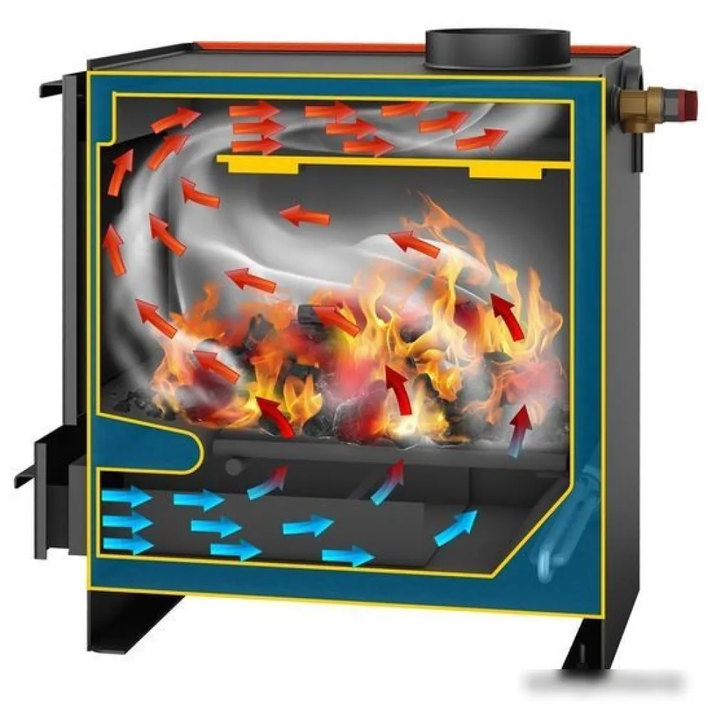 твердотопливный (дрова/уголь), 11 кВт, 110 м?, одноконтурный, напольный, закрытая камера сгорания