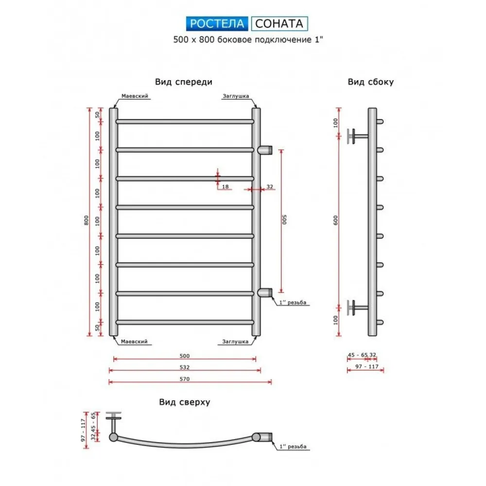 | Комплектация | крепления к стене (при высоте 60 и 70 см – 1 шт, от 80 см и выше – 2 шт), кран Маевского (1 шт), паспорт (гарантийный талон) |