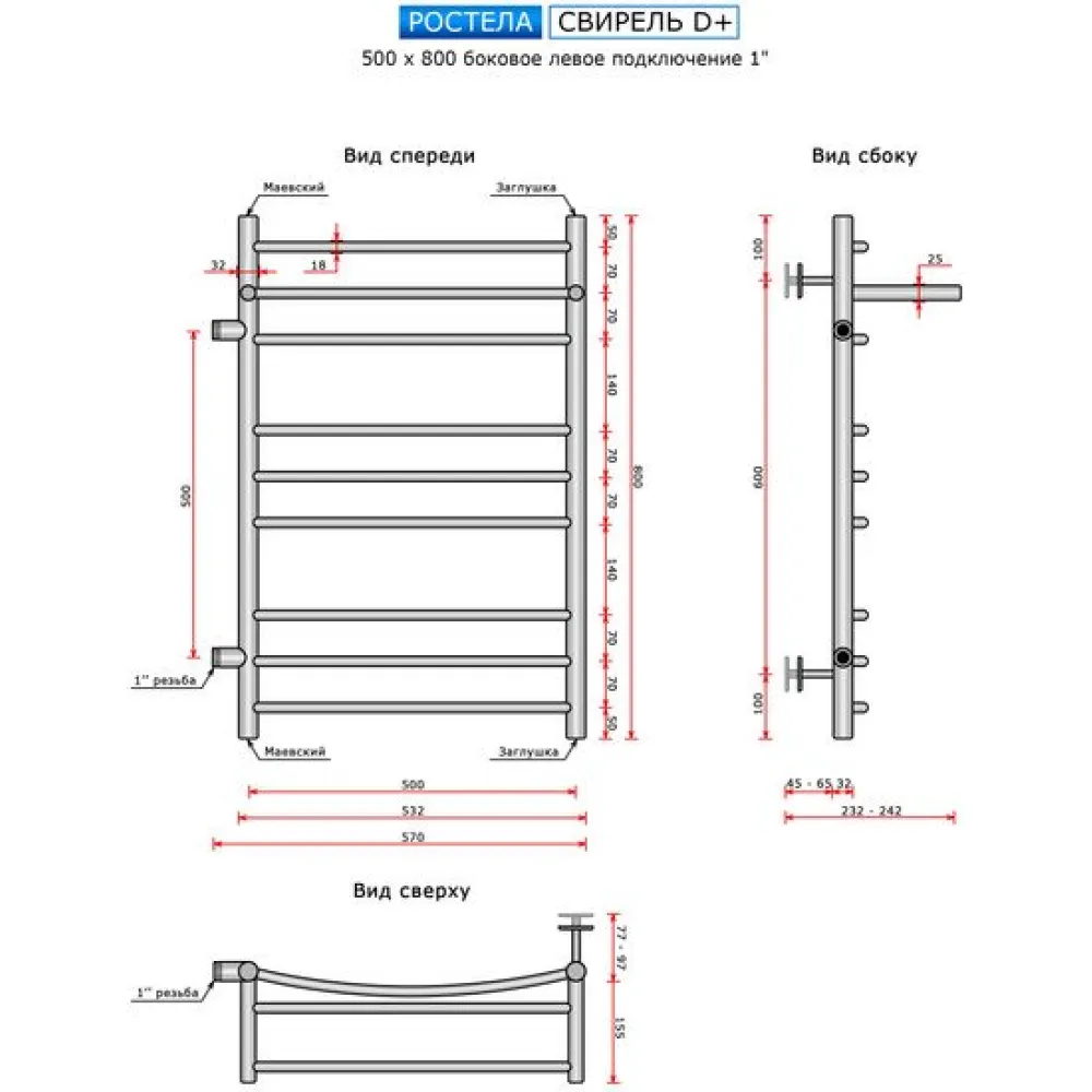 | Информация | - Полотенцесушитель Ростела Свирель D+ с боковым левым подключением 1" и размером 50x80 см. - Идеально подходит для квартир с действующим выходом 500мм. -- Поперечные дугообразные перекладины и полочка для удобства использования. - Улучшите красоту вашей ванной комнаты без особых затрат. |