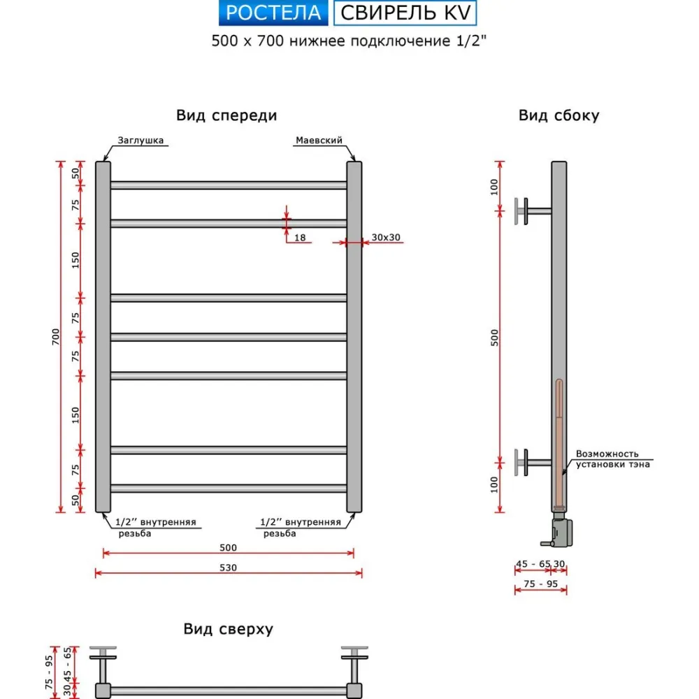 | Информация | -Ключевые характеристики Водяной полотенцесушитель с нижним подключением и межосевым расстоянием 500 мм. Изготовлен из нержавеющей стали AISI 304, что обеспечивает долговечность и устойчивость к коррозии. Имеет 7 перекладин, сгруппированных по схеме 2/3/2, и рассчитан на рабочее давление до 10 атм. Максимальная температура теплоносителя достигает 95 °С, теплоотдача составляет 296 Q-Вт. -Преимущества и отличия Модель отличается матовым покрытием и стильным черным цветом, что позволяет гармонично вписаться в современный интерьер ванной комнаты. Прямая форма лесенки обеспечивает удобство использования и эффективное высушивание полотенец. Толщина стенки трубы 2.5 мм и диаметр перекладин 18 мм гарантируют надежность и устойчивость конструкции. -Практичность Комплект включает телескопические крепления (4 шт.) и кран Маевского для удобного выпуска воздуха, что облегчает монтаж и эксплуатацию. Внутренняя резьба диаметром 1/2" обеспечивает совместимость с большинством систем водоснабжения. Рекомендуется учитывать особенности эксплуатации в определённых регионах, где гарантия может не действовать. -Уникальность Использование высококачественной нержавеющей стали AISI 304 и матового покрытия повышает устойчивость к внешним воздействиям и придаёт изделию современный внешний вид. Конструкция без поворотных секций и полочки делает изделие простым и надёжным в эксплуатации, что выделяет его среди аналогичных решений. Читать дальше |