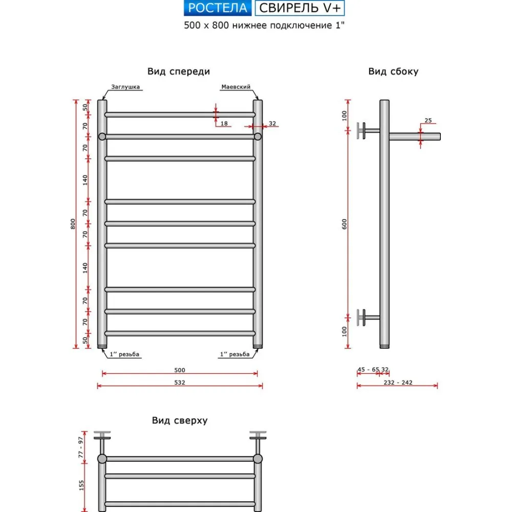 | Комплектация | кран Маевского, паспорт, крепления (4 шт.) |