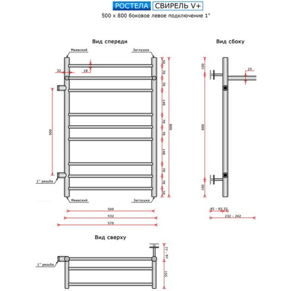 | Информация | - Полотенцесушитель Ростела Свирель V+ с боковым левым подключением 1" и размером 50x80 см идеально подходит для замены старых полотенцесушителей. - С боковым подключением и наружной резьбой 1", этот полотенцесушитель легко устанавливается в квартирах с уже существующим выходом 500мм. -- Расстояние по центру подключения составляет 500мм, что делает его удобным для замены старых полотенцесушителей. - Полотенцесушитель с полочкой и поперечными прямыми перекладинами обеспечивает улучшение внешнего вида ванной комнаты без больших затрат. |
