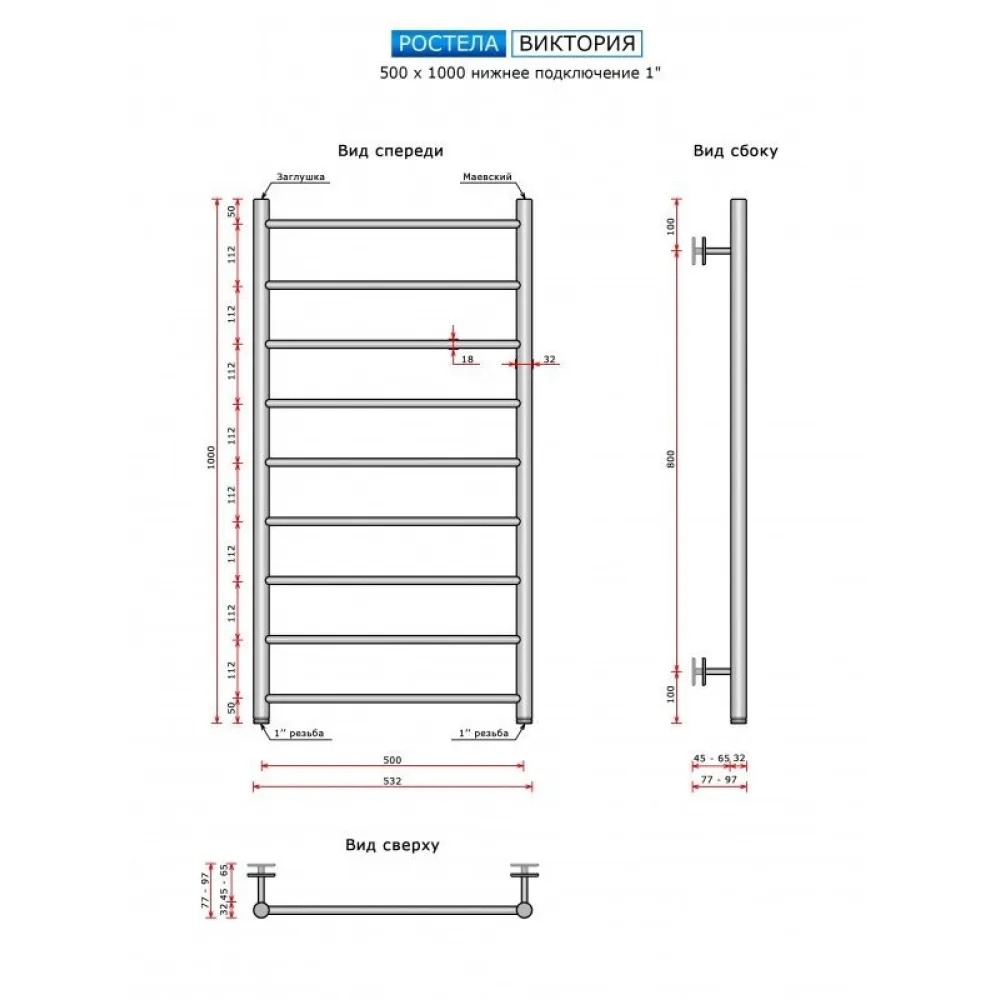 Полотенцесушитель Ростела Виктория 1" 9 перекладин 50х100 см (белый)