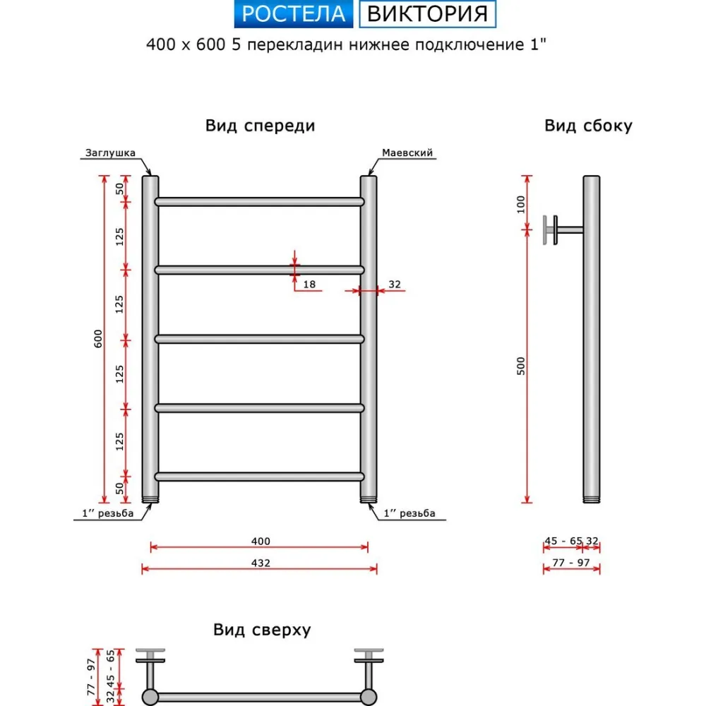 Полотенцесушитель Ростела Виктория 40x60/5 (1", нижнее подключение)