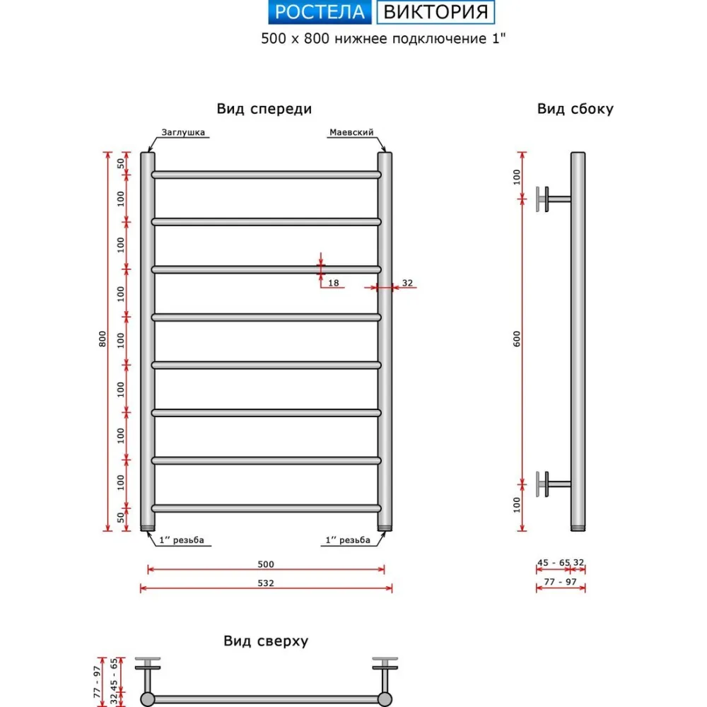 | Информация | --Текст описания составлен при помощи искусственного интеллекта. - Полотенцесушитель водяной Ростела Виктория — это идеальное решение для вашего комфорта и уюта в ванной комнате. Его форма в виде лесенки не только эстетична, но и функциональна, позволяя удобно развешивать полотенца и обеспечивая их быстрое высыхание. - С высотой 800 мм и шириной 532 мм, этот полотенцесушитель отлично впишется в любое пространство. Прямые линии и матовое покрытие придают ему современный вид, который гармонично сочетается с любым интерьером. - Удобство использования обеспечивается наличием 8 перекладин, которые позволяют разместить достаточное количество полотенец. К тому же, в комплект входят два крана Маевского и телескопическое крепление, что делает установку и эксплуатацию максимально простой. - Обратите внимание на рабочее давление в 10 атм и максимальную температуру теплоносителя до 95 °С — это гарантирует надежность и долговечность работы устройства. - Полотенцесушитель Ростела Виктория — это не только практичное, но и стильное дополнение к вашему дому, которое обеспечит тепло и комфорт в любое время года. |