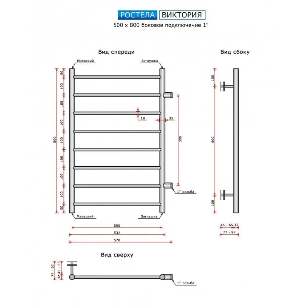 | Комплектация | крепления к стене (при высоте 60 и 70 см – 1 шт, от 80 см и выше – 2 шт), кран Маевского (1 шт), паспорт (гарантийный талон) |