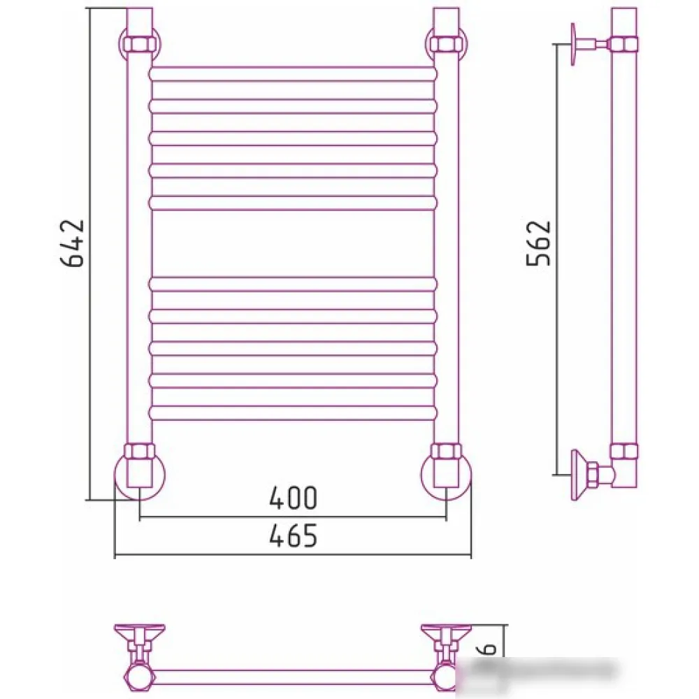 водяной, "лесенка", нержавеющая сталь, подключение нижнее/диагональное/боковое, 64.2x46.5 см, цвет: хром