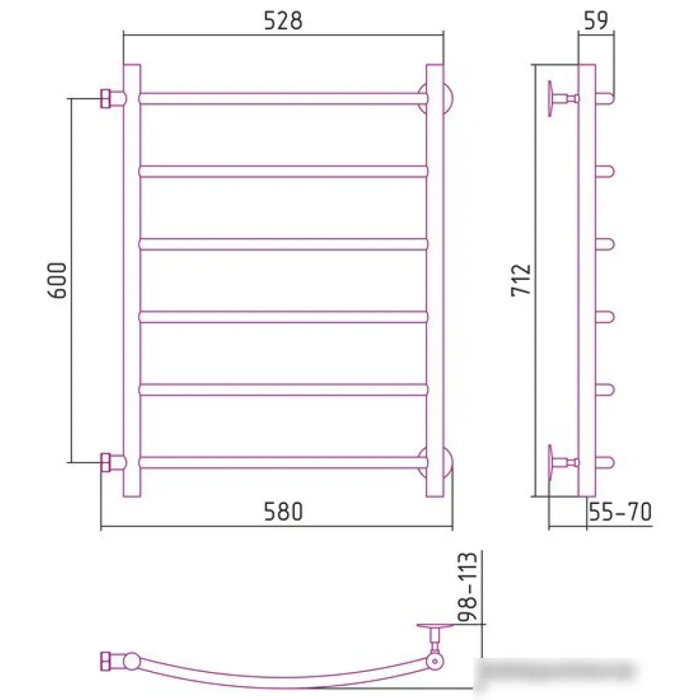 Полотенцесушитель Стилье Версия-Б2 600х500 (6) Г 18 17612-6050