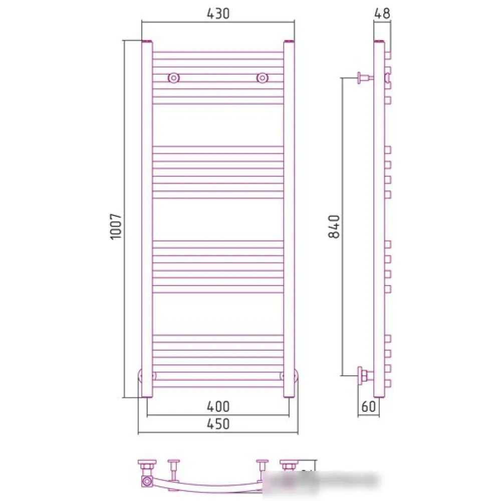 водяной, "лесенка", нержавеющая сталь, подключение нижнее/диагональное/боковое, 100.7x45 см, цвет: хром