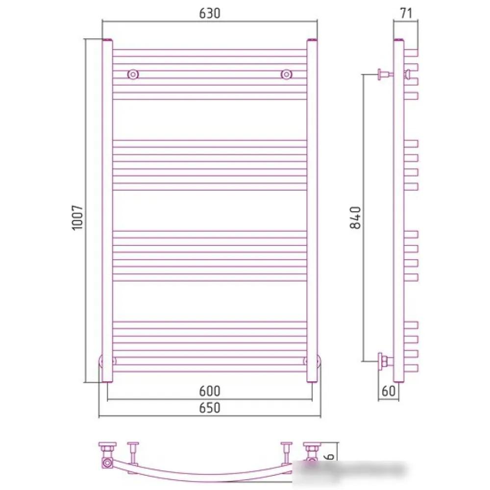 | Подключение | боковое, нижнее, диагональное |