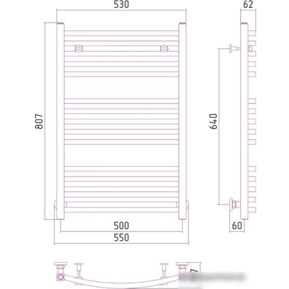 водяной, "лесенка", нержавеющая сталь, подключение нижнее (500 мм, 1/2"), 80.7x55 см, цвет: полированная сталь