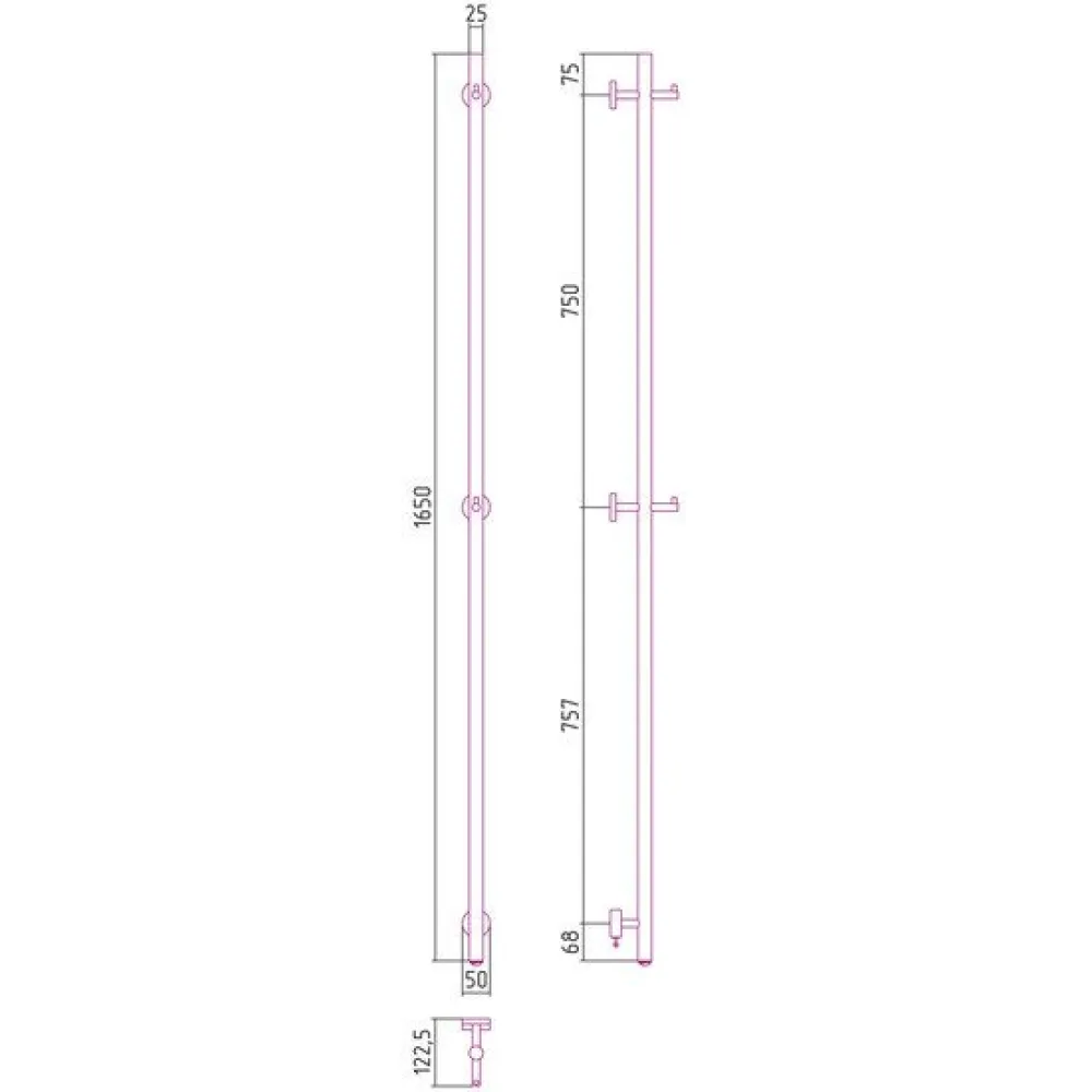 электрический, вертикальный, нержавеющая сталь, подключение боковое, 165x5 см, цвет: белый