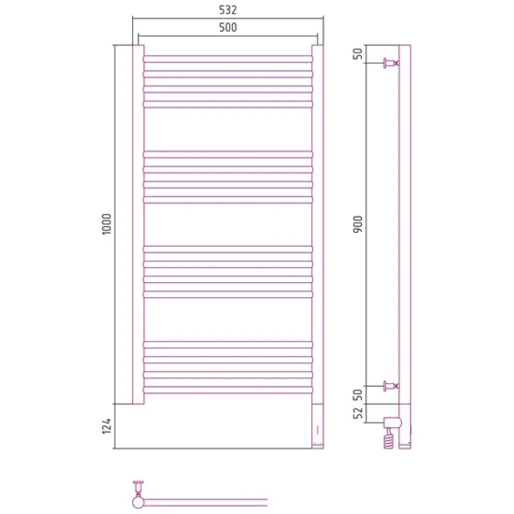 Полотенцесушитель Сунержа Богема 3.0 прямая 1000х500 МЭМ правый 051-5805-1050
