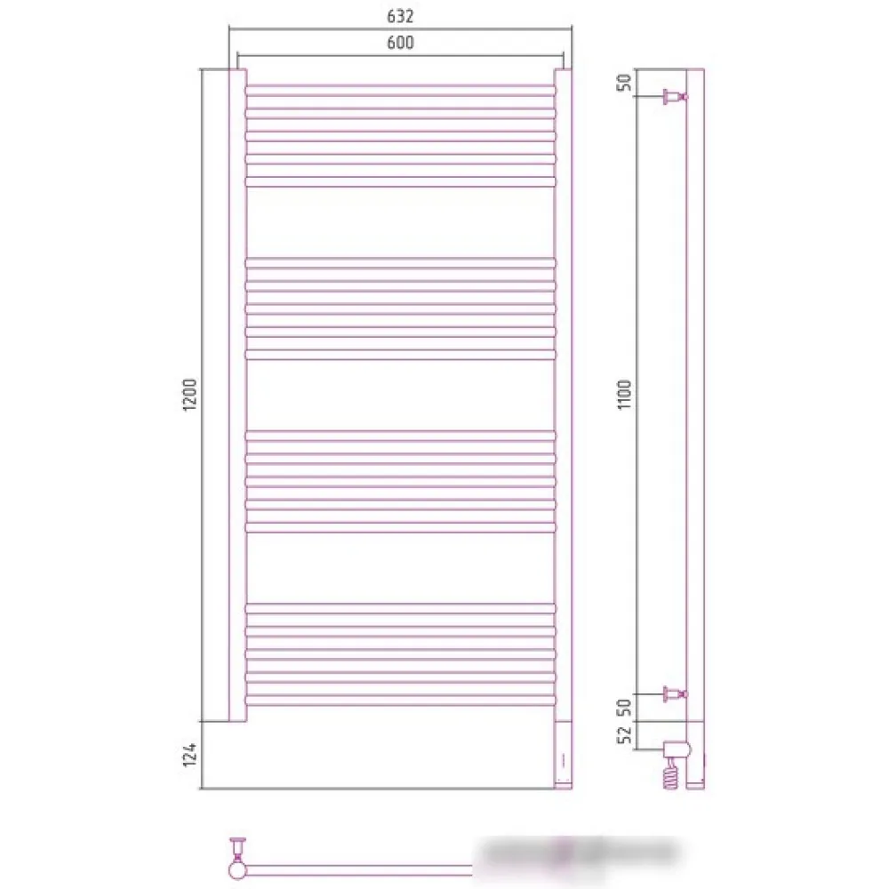 Полотенцесушитель Сунержа Богема 3.0 прямая 1200х600 МЭМ правый 00-5805-1260