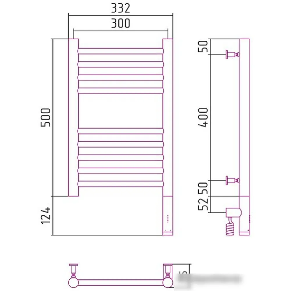 Полотенцесушитель Сунержа Богема 3.0 прямая 500х300 МЭМ правый 31-5805-5030