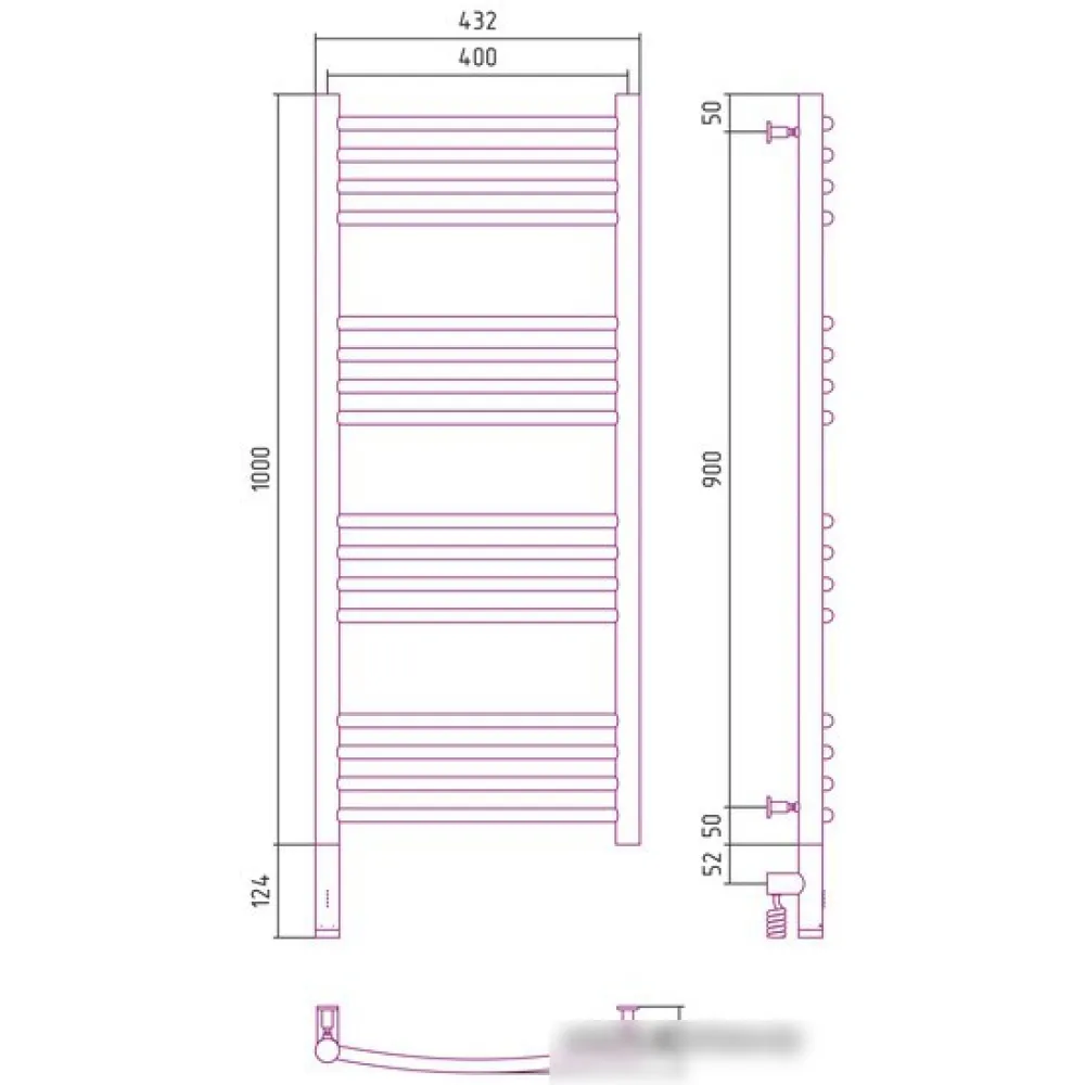 Полотенцесушитель Сунержа Богема 3.0 выгнутая 1000х400 МЭМ левый 31-5802-1040