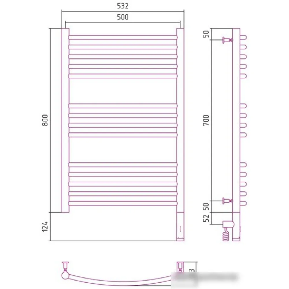 Полотенцесушитель Сунержа Богема 3.0 выгнутая 800х500 МЭМ правый 00-5803-8050