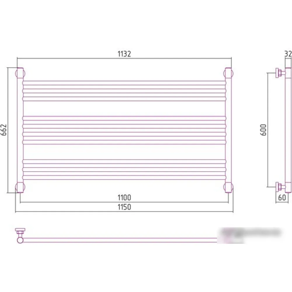 водяной, "лесенка", нержавеющая сталь, подключение боковое/нижнее/диагональное (1100 мм, 1/2"), 66.2x115 см, цвет: полированная сталь