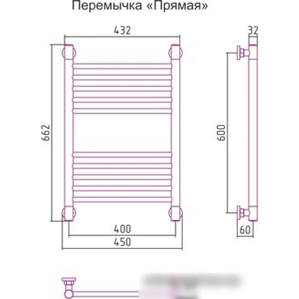 водяной, "лесенка", нержавеющая сталь, подключение боковое/нижнее/диагональное (400 мм, 1/2"), 66.2x45 см, цвет: полированная сталь