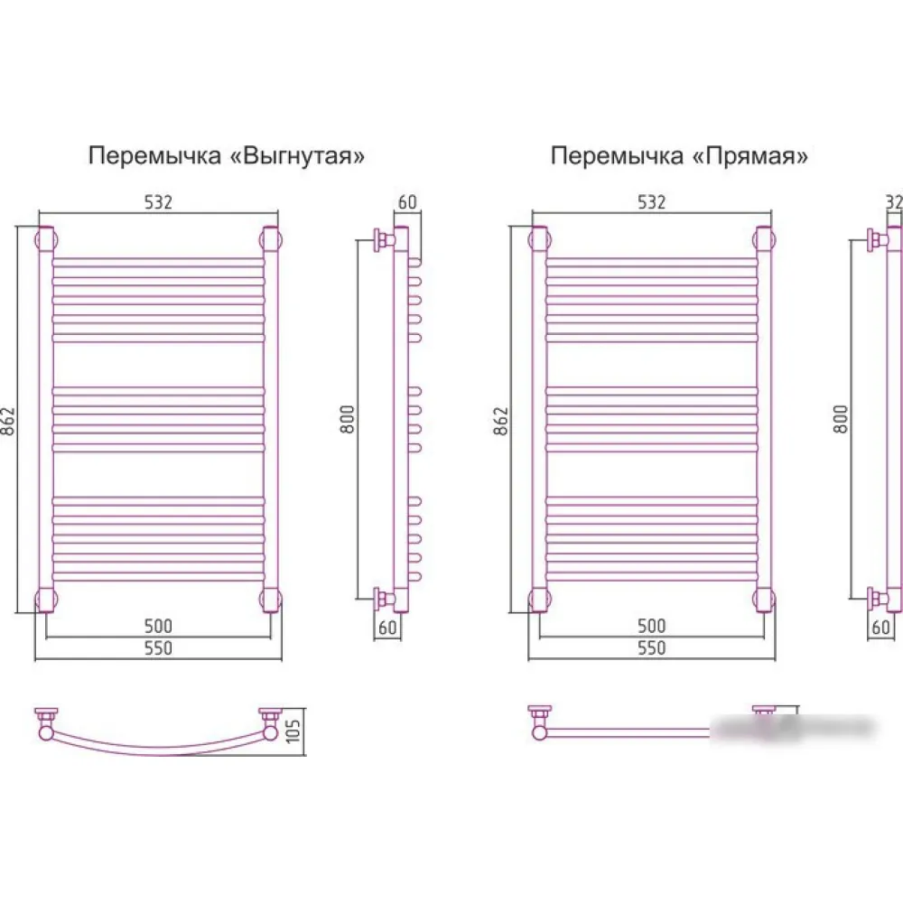 водяной, "лесенка", нержавеющая сталь, подключение нижнее/диагональное, 86.2x55 см, цвет: полированная сталь