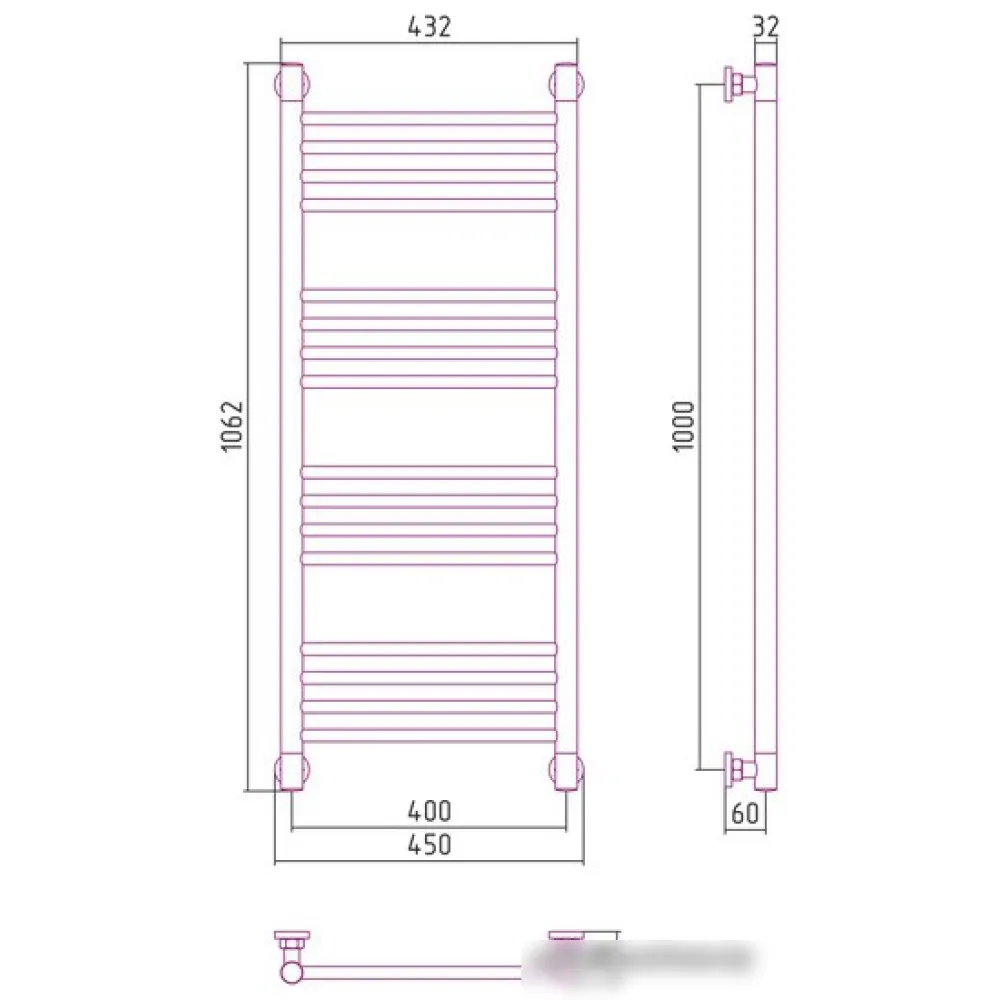 | Информация | межосевое расстояние при вертикальном подключении 1000 мм; межосевое расстояние при диагональном подключении 1000 мм в параметрах указано межосевое расстояние при нижнем подключении |