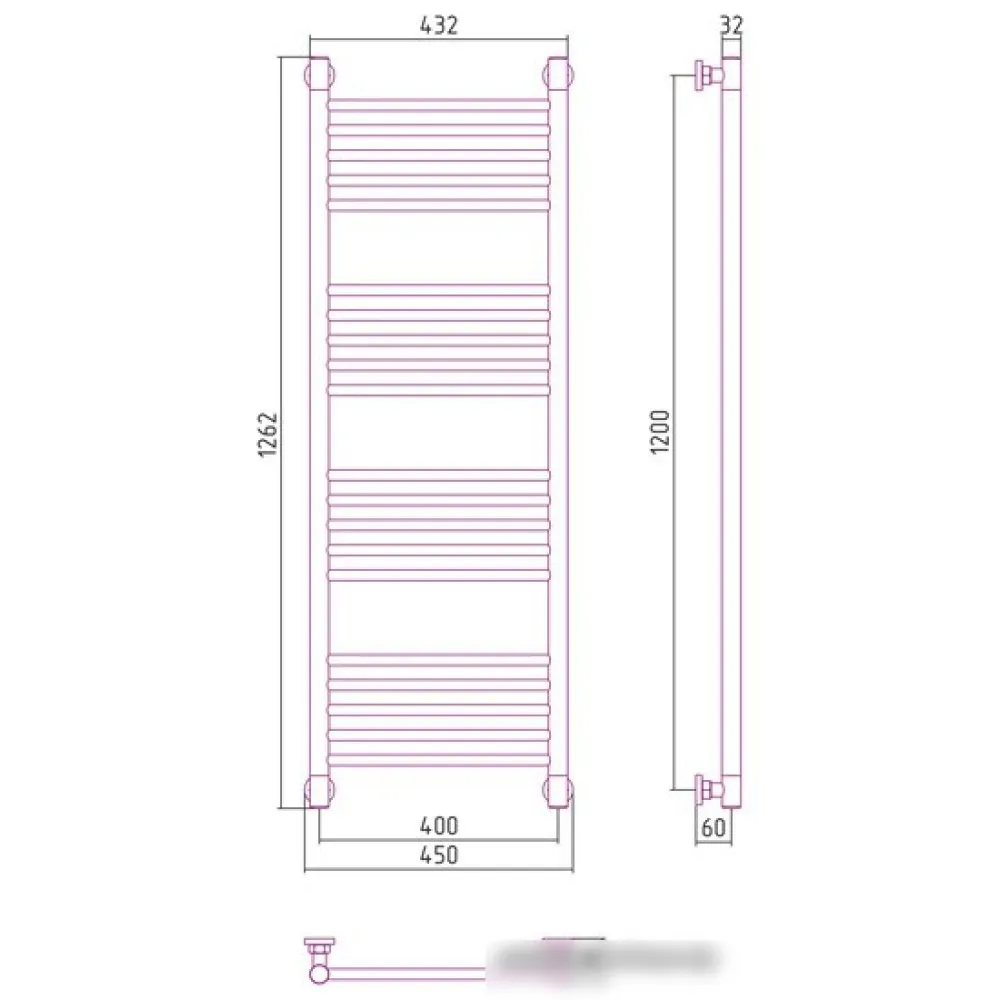| Информация | межосевое расстояние при вертикальном подключении 1200 мм; межосевое расстояние при диагональном подключении 1200 мм в параметрах указано межосевое расстояние при нижнем подключении |
