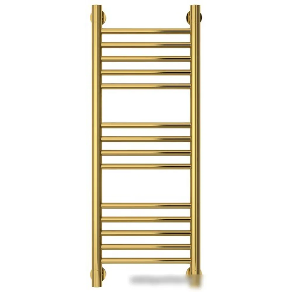 водяной, "лесенка", нержавеющая сталь, подключение нижнее/диагональное/боковое, 86.2x35 см, цвет: золотистый