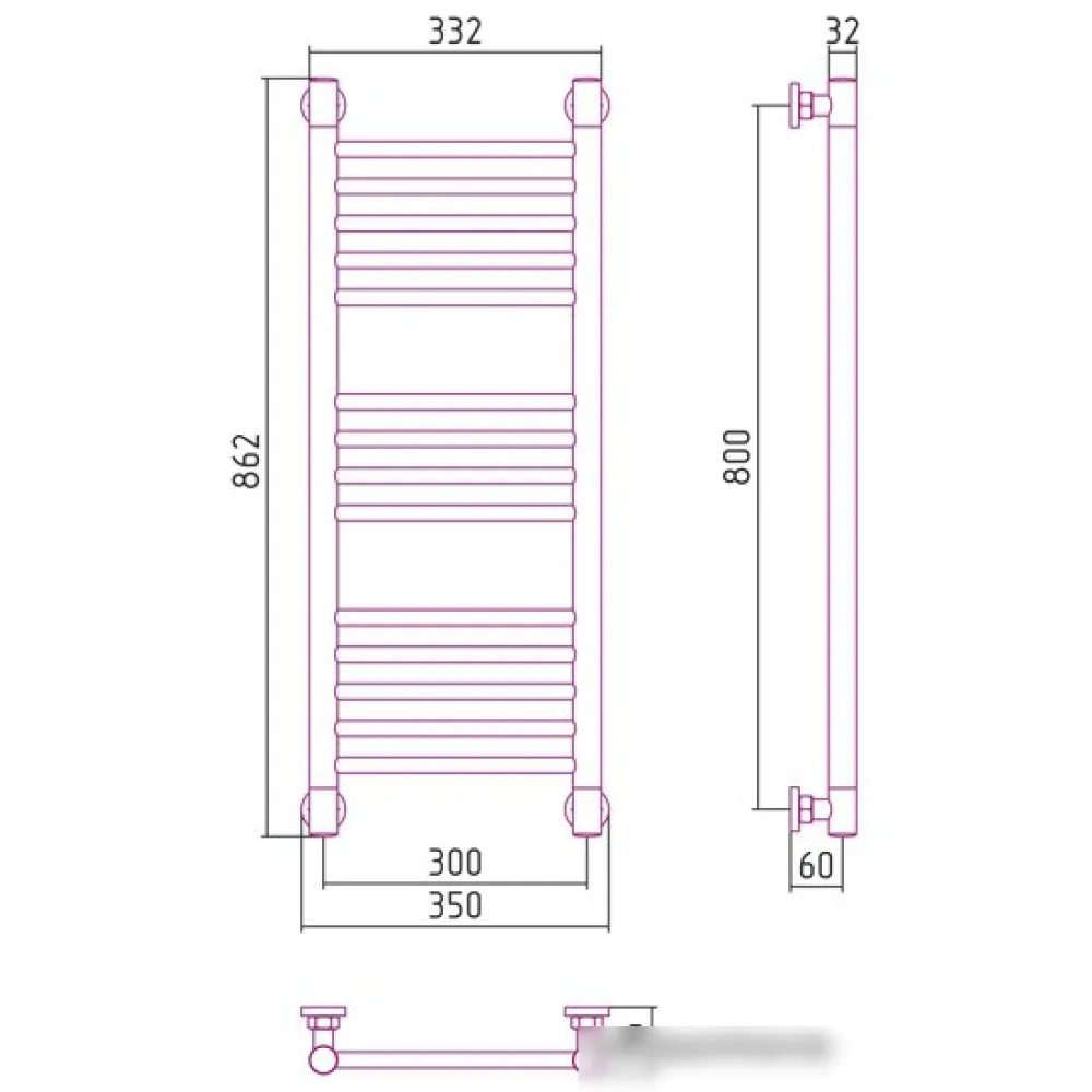 | Информация | межосевое расстояние при вертикальном подключении 800 мм; межосевое расстояние при диагональном подключении 800 мм в параметрах указано межосевое расстояние при нижнем подключении |