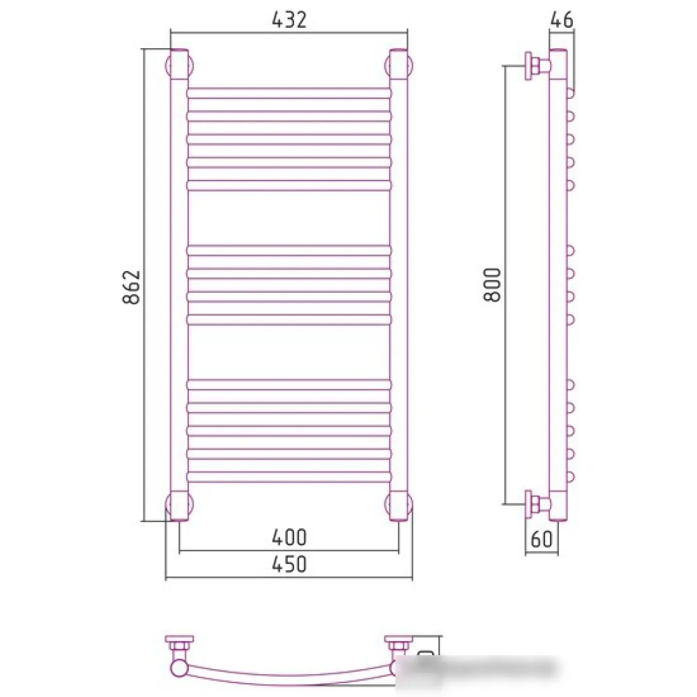 | Информация | межосевое расстояние при вертикальном подключении 800 мм; межосевое расстояние при диагональном подключении 800 мм в параметрах указано межосевое расстояние при нижнем подключении |