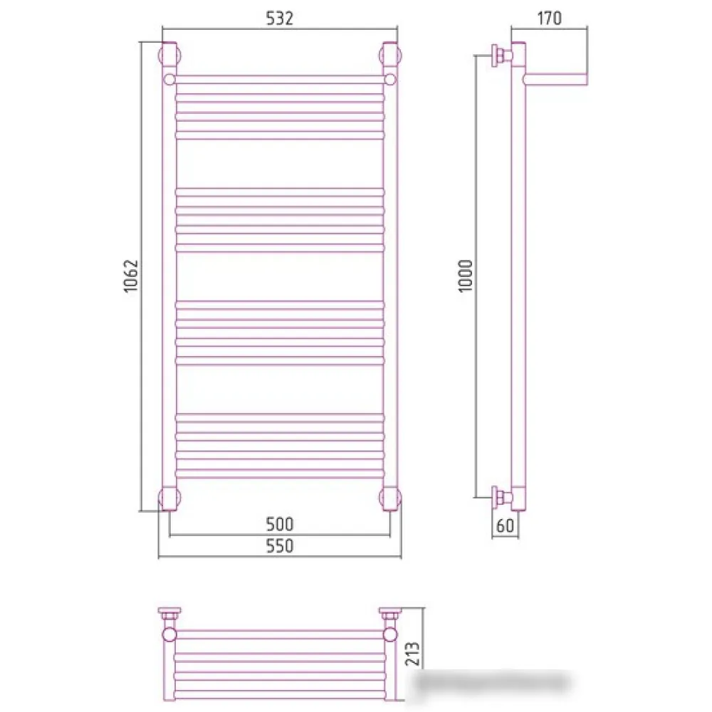 | Комплектация | Угловые элементы Спускной клапан Отражатели, эксцентрики и опоры кронштейнов Декоративные заглушки Комплект прокладок Шестигранные ключи Дюбели и саморезы |