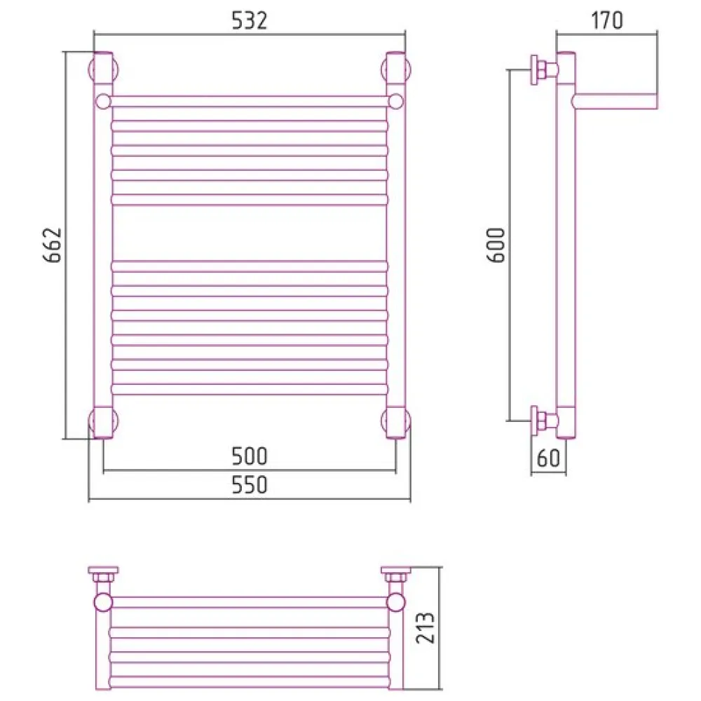 | Информация | межосевое расстояние при вертикальном подключении 600 мм; межосевое расстояние при диагональном подключении 600 мм в параметрах указано межосевое расстояние при нижнем подключении |