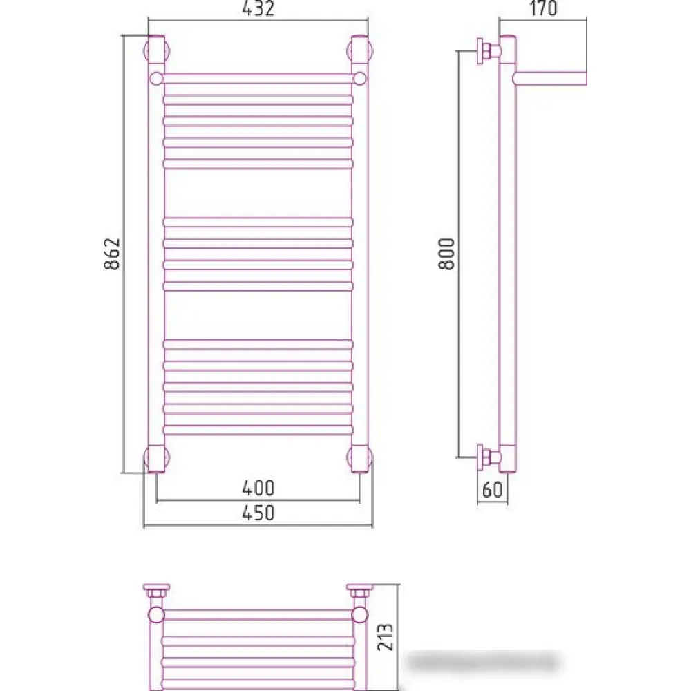 водяной, "лесенка", нержавеющая сталь, подключение нижнее/диагональное, 86.2x45 см, цвет: полированная сталь