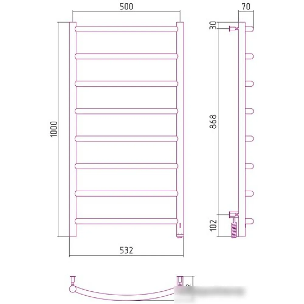 Полотенцесушитель Сунержа Галант 4.0 1000х500 МЭМ правый 00-0831-1050