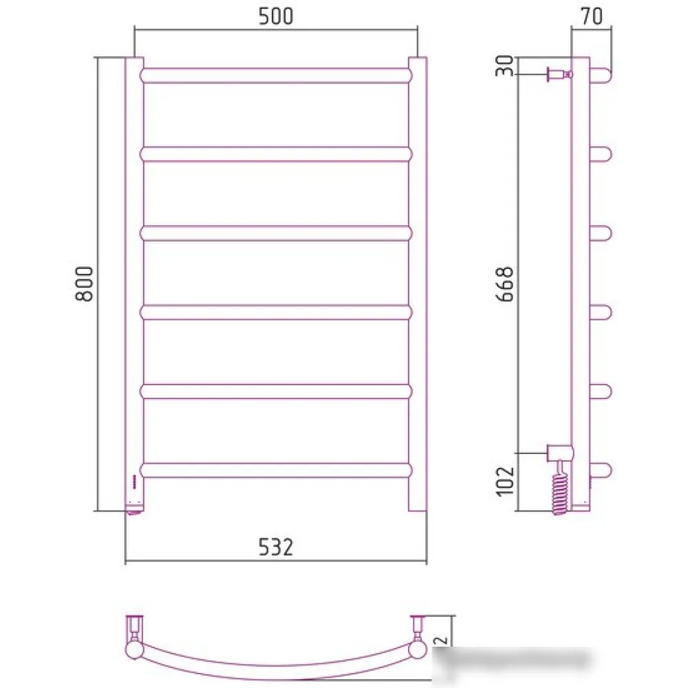 электрический, "лесенка", нержавеющая сталь, 80x53.2 см, цвет: хром