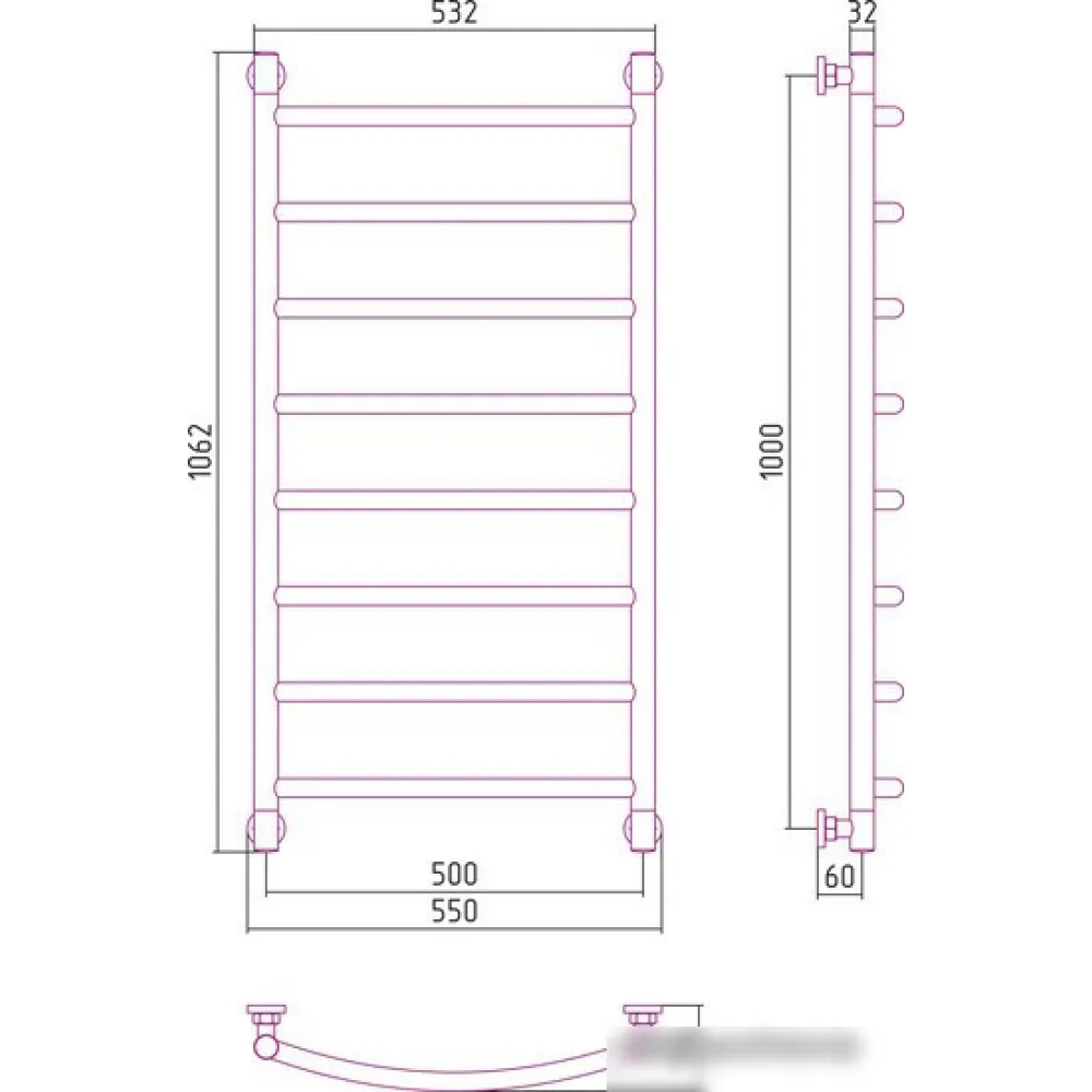 водяной, "лесенка", нержавеющая сталь, подключение диагональное, 106.2x55 см, цвет: полированная сталь