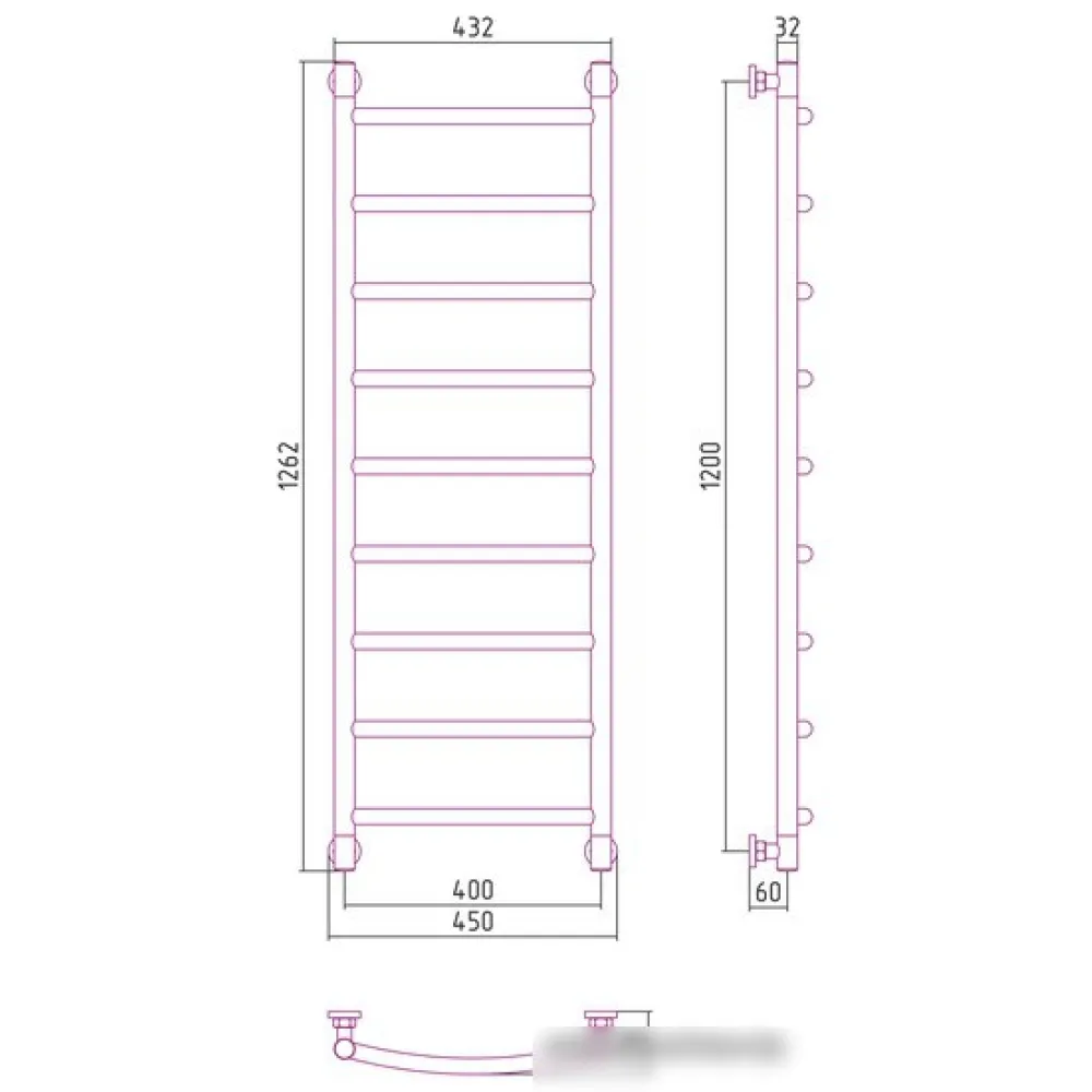 | Информация | межосевое расстояние при вертикальном подключении 1200 мм; межосевое расстояние при диагональном подключении 1200 мм в параметрах указано межосевое расстояние при нижнем подключении |