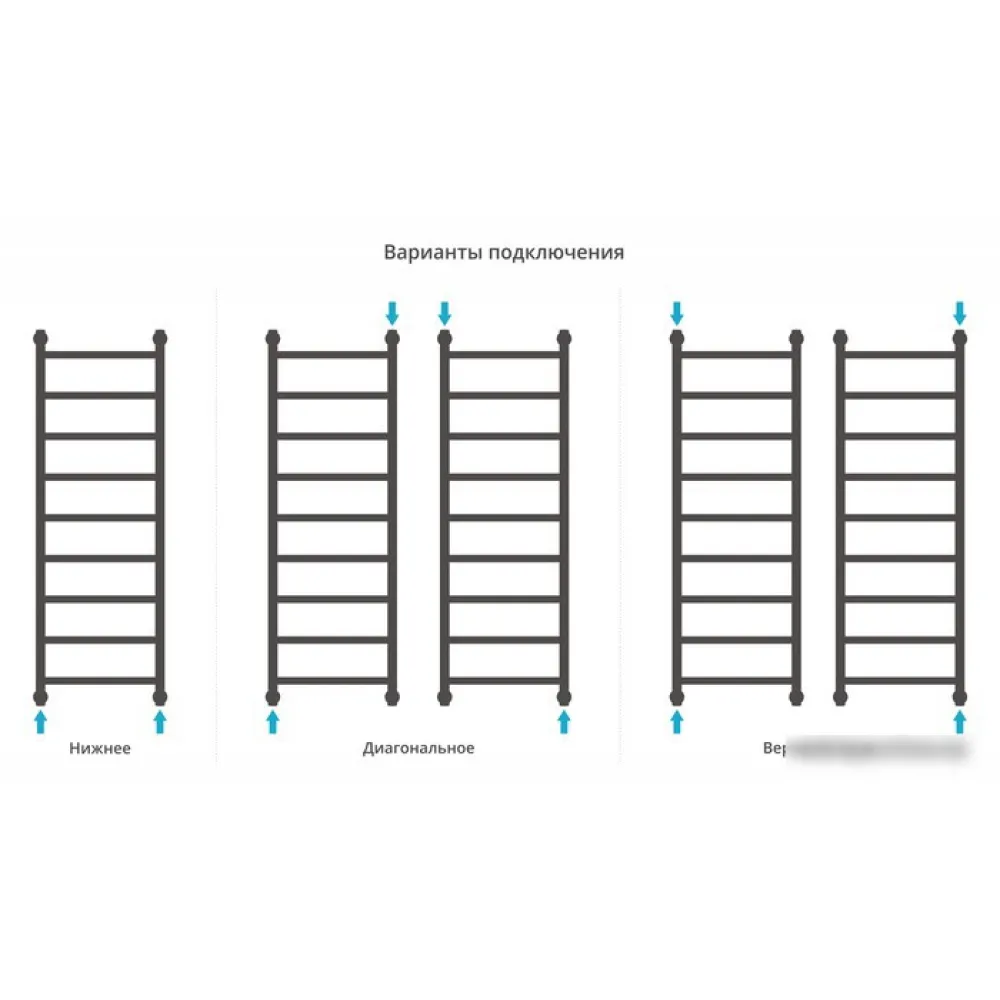 водяной, "лесенка", нержавеющая сталь, подключение нижнее/диагональное/боковое, 126.2x45 см, цвет: черный
