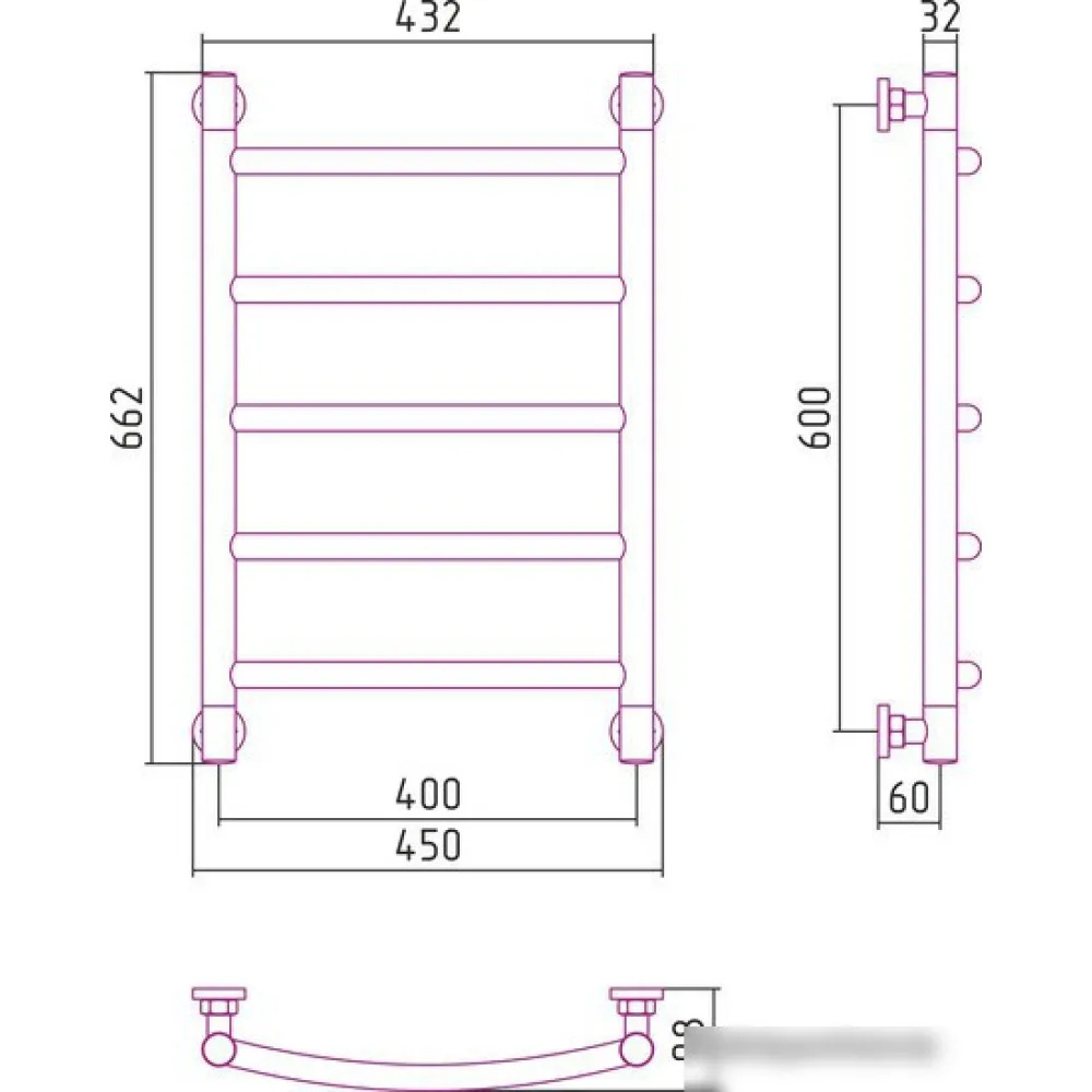 водяной, "лесенка", нержавеющая сталь, подключение диагональное, 66.2x45 см, цвет: полированная сталь